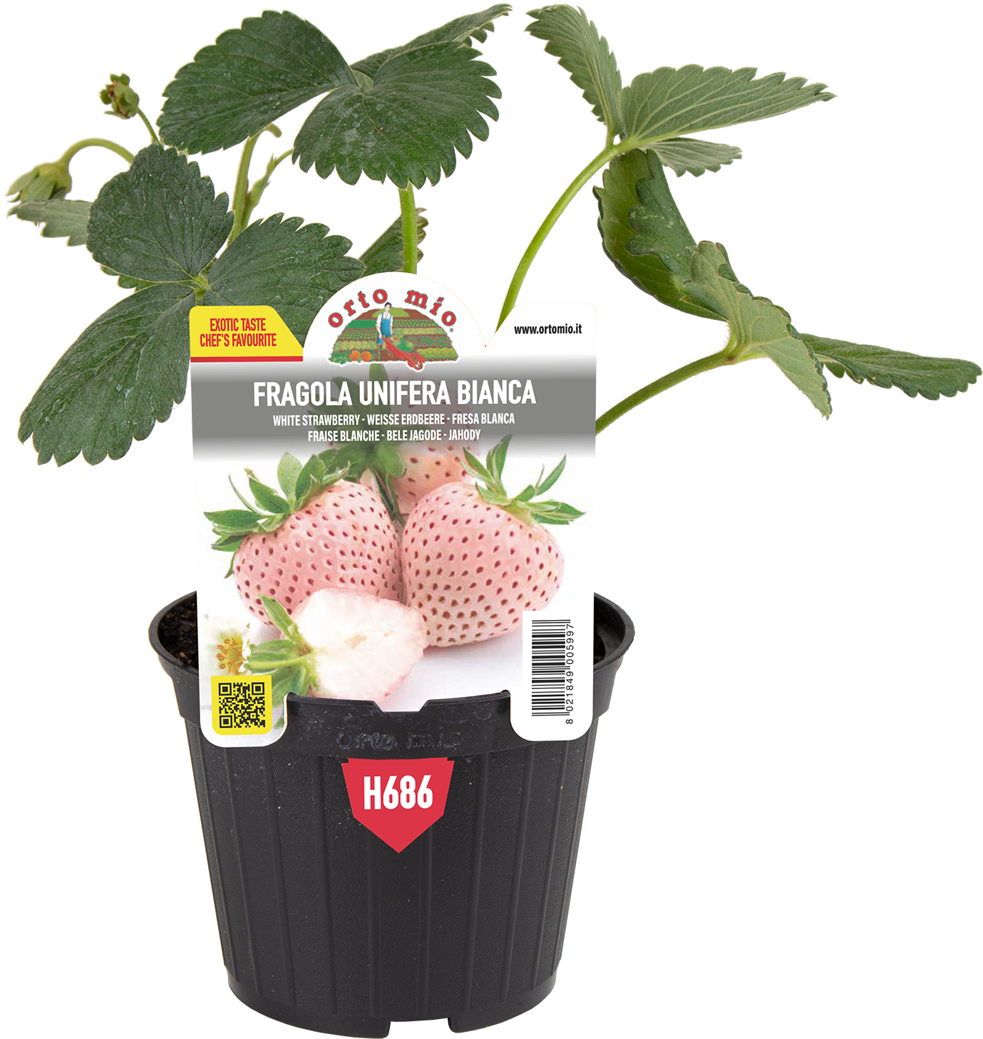 Varietà gourmet: dolcissima, con polpa tenera e succosa. È considerata da molti appassionati la fragola più buona. Il sapore è unico: grazie all’equilibrio tra aroma marcato, grado zuccherino e acidità. Le note d’ananas e pesca gli conferiscono un gusto straordinario, da frutto esotico. Pianta vigorosa, molto forte e sana, poco suscettibile alle comuni malattie fungine. Bacche di calibro medio. La maturazione si evidenzia con la presenza di una sfumatura rosa sulle bacche bianche; se lasciate sulle piante il colore vira rapidamente al rosa carico e poi al rosso aranciato a maturazione avanzata. I frutti prodotti nei periodi caldi, assumono più rapidamente la colorazione arancio rossa. La polpa di colore bianco è la garanzia che si tratta proprio della fragola bianca. Adatta alla coltivazione in campo aperto e in serra, dove esalta la sua precocità. Bianca n.5 offre la migliore produzione alla seconda primavera dopo quella dell'impianto.