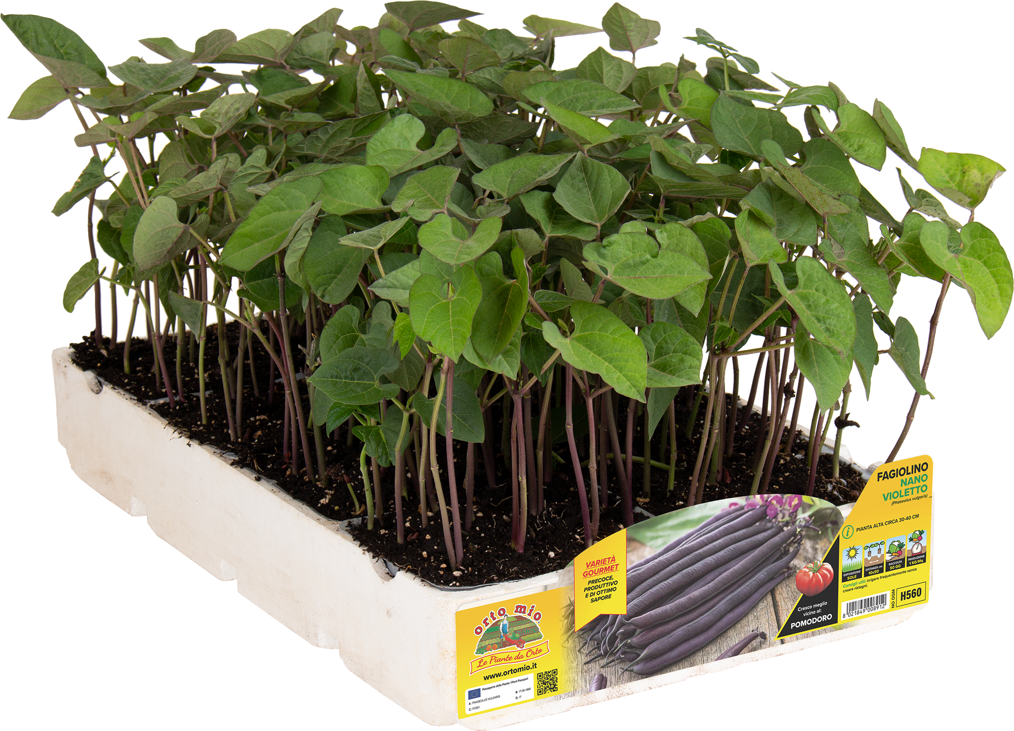 Originale varietà di fagiolino mangiatutto dal colore violetto. I baccelli sono di ottima qualità: carnosi e senza filo, lunghi 15 cm. La pianta raggiunge l'altezza di circa 40 cm e non necessita di sostegni. Di facile coltivazione nell’orto. Come gli altri fagiolini, gradisce irrigazioni regolari nei periodi caldi, evitando attentamente i ristagni.